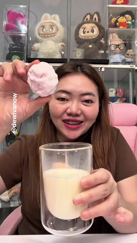 Bola ajaib dari cotton candy + marshmallow #dewivanow #marshmallow #cottoncandy #milk #chompchomp