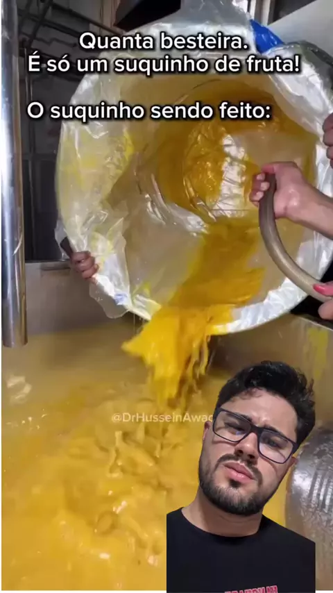 “Vê vídeo de fábrica lá de fora e surta? Calma: aqui no Brasil o controle de higiene é muito mais rigoroso. Mas isso não muda o básico: suco de caixinha é industrializado. Tem açúcar, aromatizante, conservante, estabilizante e muitas vezes quase nada de fruta. Higienizado? Sim. Natural? Nunca. Se quiser algo real, vai na fruta. 🍊🍍🍓”