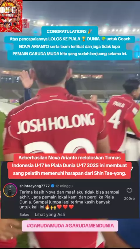 TIMNAS INDONESIA U -17 BERASIL LOLOS KUALIFIKASI MENUJU PIALA DUNIA , Tongkat estafet Coach SHIN TAEYOUNG di terima baik oleh coach NOVA Arianto #timnasindonesia #KualifikasiPD #coachnovarianto #garudamuda #pialaduniau17