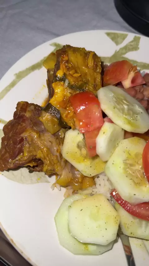 Almoço de hoje costela pepino tomate arroz e feijão #almoço