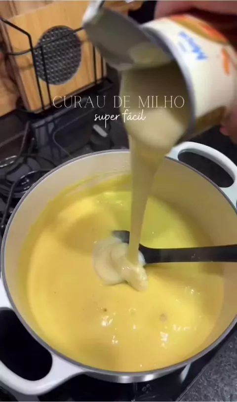 CURAU DE MILHO 🌽 ✅ INGREDIENTES: - 3 xícaras de milho verde (aproximadamente 5 espigas) - 2 xícaras de leite - 1 xícara de água - 1 colher de sopa de manteiga sem sal - 1 lata de leite condensado . ✅ PREPARO: Bata o milho com água e leite no liquidificador e passe na peneira. Em uma panela, coloque o líquido com a manteiga e o restante do leite e cozinhe até engrossar. Junte o leite condensado, abaixe o fogo e cozinhe por mais 5min. . 🌽 Se quiser, pode usar milho em lata, tem alguns no