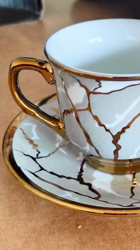 Jogo de xícaras Ideal para o chá, café ou para decorar sua mesa com sofisticação. Inspirado na arte japonesa Kintsugi, com efeito marmorizado e detalhes em ouro, que trazem um toque de luxo e originalidade 🤩 #xícaras #jogodexícaras #mesaposta #decoraçao #SHOPEE