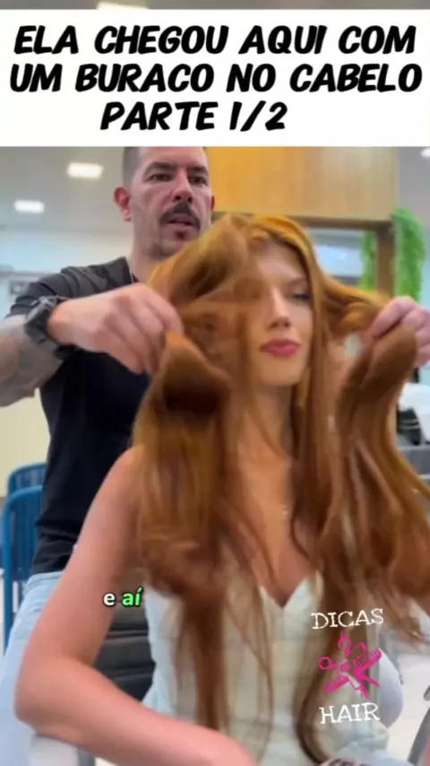 Ela chegou aqui com um buraco no cabelo #cabelos #cuidadoscomoscabelos #dicasdecabelos #cortedecabelo #fashion