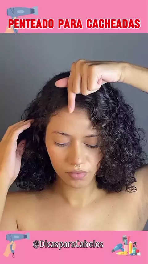 tutorial de penteado com elástico para cabelos cacheados e curtos #penteado #penteados #cabelocacheado #Cachos #cabelocurto