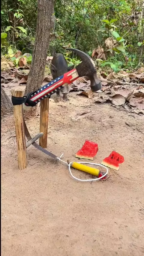 Armadilha de porco incrível usando madeira e martelo # wildpig # pigtrap # wildboar