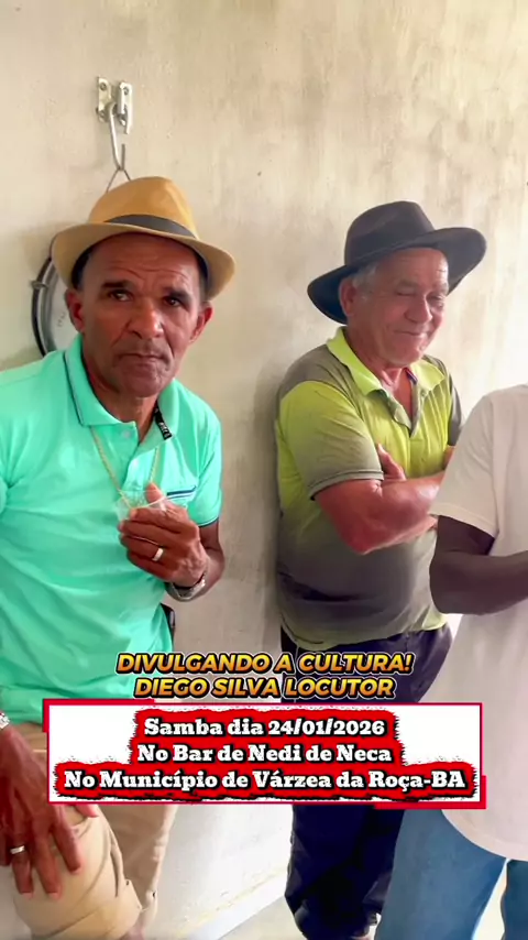 🎶 Samba no Bar de Nede de Neca, sábado dia 24 de janeiro de 2026, no município de Várzea da Roça-BA No último sábado, dia 24 de janeiro de 2026, a zona rural de Várzea da Roça pulsou com muito samba! O evento começou na tarde e se estendeu até a noite, reunindo sambadores de Várzea da Roça, Mairi, Quixabeira, São José e toda a região. Foi uma festa cheia de chulas bonitas e batuques animados, onde todos se divertiram muito! Agradecemos ao Nede, sua esposa e família pelo atendimento maravilho