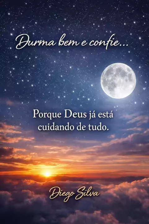 Às vezes tudo o que precisamos é entregar nossos pensamentos a Deus e descansar o coração. A noite chega para nos lembrar que é tempo de desacelerar, silenciar a mente e confiar que Deus está cuidando de cada detalhe da nossa vida, mesmo quando não conseguimos entender os caminhos. Que esta noite seja de paz, de tranquilidade e de renovação. Que Deus visite o seu lar, proteja sua família e prepare um novo amanhecer cheio de esperança, saúde e bênçãos.