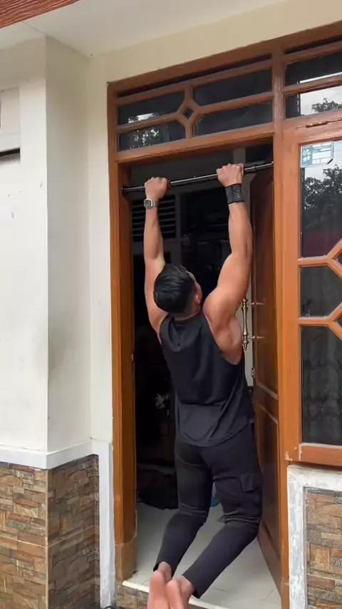 Latihan pull up gk harus bikin tiang yg Full, cukup pake pull up bar aja👌