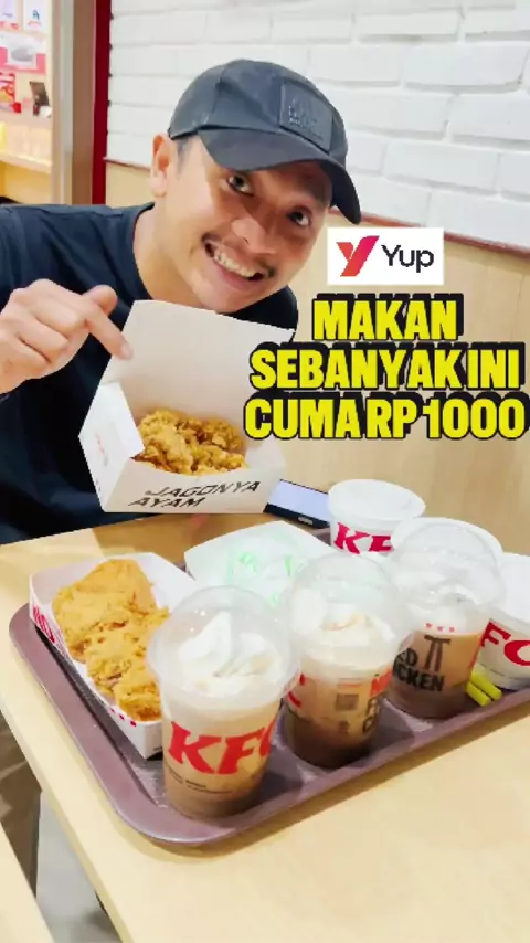 MAKAN ENAK DI KFC SEBANYAK INI CUMA RP 1.000?! 😭🍗✨ Gak salah denger, Bestie! Modal seribu perak doang pake aplikasi Yup, kamu udah bisa dapet paket Big Treat 2 yang isinya: 🍗 3 Pcs Ayam 🍚 3 Nasi + 3 Cream Soup 🥓 6 Crispy Strips 🥤 3 Mocha Float Gila banget kan hematnya? Langsung serbu KFC terdekat sekarang! #snack #makanenak #kfc #yup #foryourpage