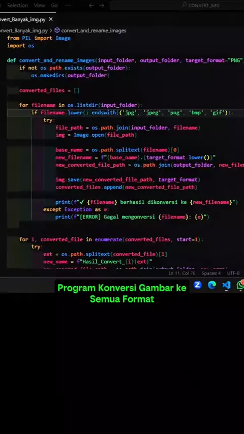Program Python untuk Mengonversi Semua Gambar ke JPG, PNG, dan Format Lain dalam Satu Klik 🔥 _ #PythonScript #ImageConversion #BatchImageConverter #OneClickConversion #ImageProcessing #PythonCode #BatchProcessing #AutomateTasks #ImageTools #TechAutomation #ConvertToJPG #ConvertToPNG #FileFormatConversion #ImageBatchProcessing #pythonprogrammer