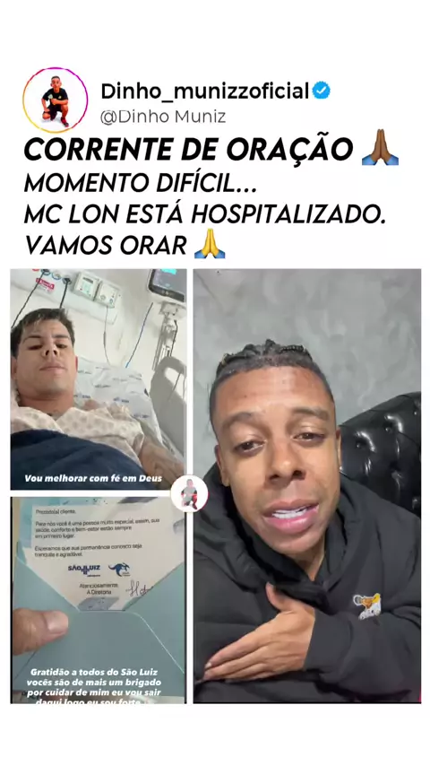 Momento difícil… MC Lon está hospitalizado. Vamos orar 🙏