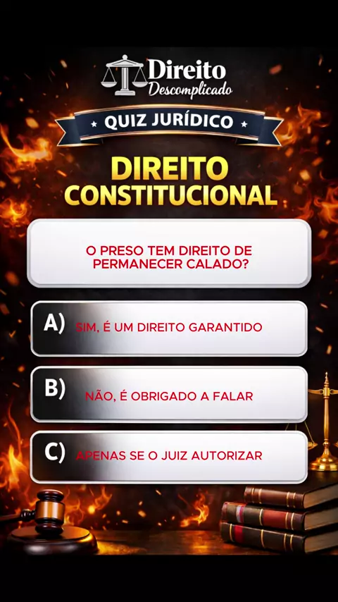 QUIZ DE DIREITO CONSTITUCIONAL PARA INICIANTES - 06 #quiz #questoesdedireito #direitooab #DireitoParaConcurseiros #direitoconstitucional 🧠⚖️ QUIZ DE DIREITO CONSTITUCIONAL PARA INICIANTES #06 Você está começando a estudar Direito Constitucional e quer testar seus conhecimentos de forma leve e prática? Então este quiz é para você! Neste vídeo, você vai responder perguntas básicas sobre Constituição Federal, princípios fundamentais, direitos e garantias, tudo explicado de forma simples e direta