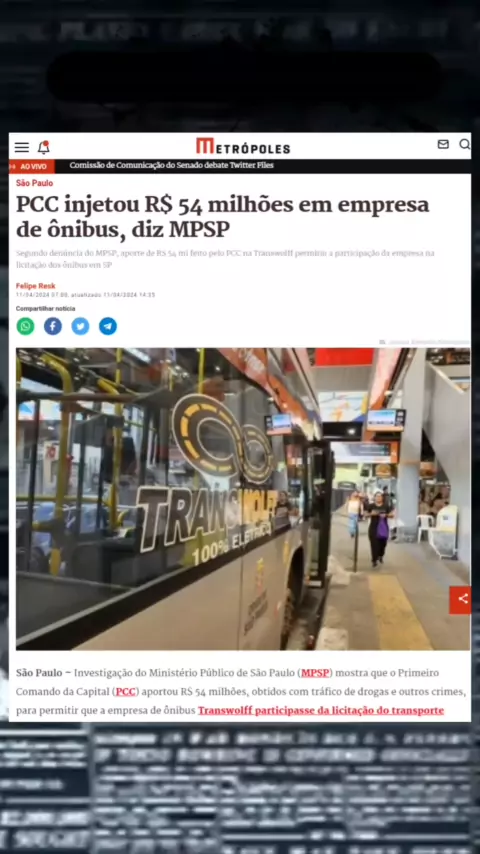 pcc injetou R$54 milhões em empresas de ônibus diz mpsp fonte : metrópoles 04/2024 #pccempresasdeonibus #kwainoticias #noticias #politica #ultimasnoticias