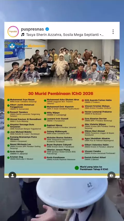 ciee selamat yang lolos tahap II pembinaan IChO 2026!!!! olimpiade kimia!! . . . . #olimpiadesainsnasional #osnkimia #olimpiadekimia #internationalchemistryolympiad #kevinliusbong