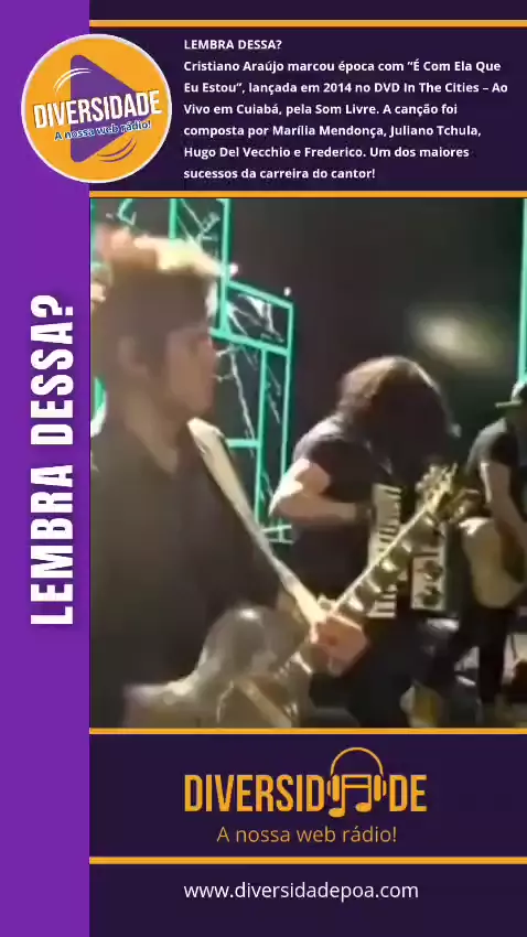 LEMBRA DESSA? Cristiano Araújo marcou época com “É Com Ela Que Eu Estou”, lançada em 2014 no DVD In The Cities – Ao Vivo em Cuiabá, pela Som Livre. A canção foi composta por Marília Mendonça, Juliano Tchula, Hugo Del Vecchio e Frederico. Um dos maiores sucessos da carreira do cantor! #hit2014 #diversidadepoa #lembradessa #CristianoAraujo #sertanejo