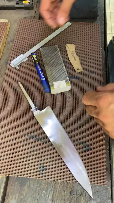 Curly mango em uma chef de aço damasco!!! Madeira FARM WOOD #handmade #damascussteel #bladesmith #cutelaria #curiosidades
