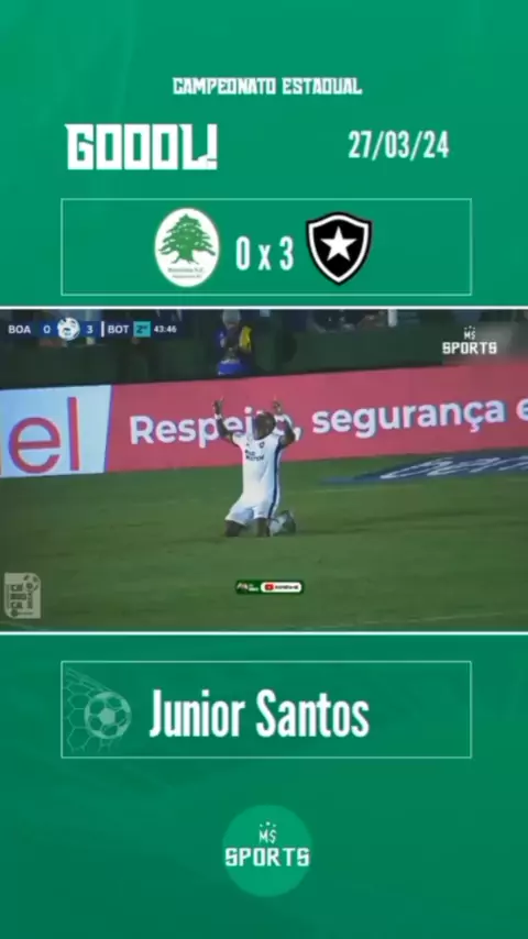Gool Júnior Santos! Boa Vista 0 x 3 Botafogo | 1° jogo final taça rio 27/03/24 #Futebol #mssports #Botafogo #maisgolds