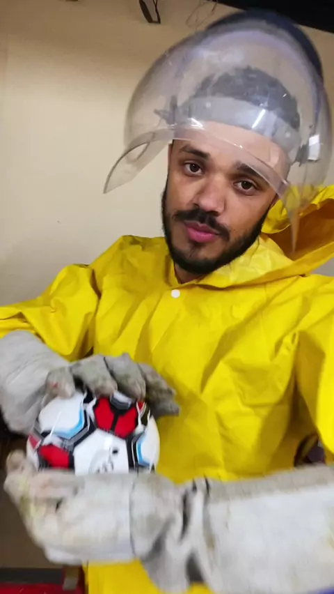 Cortei uma bola de futebol com uma motosserra...
