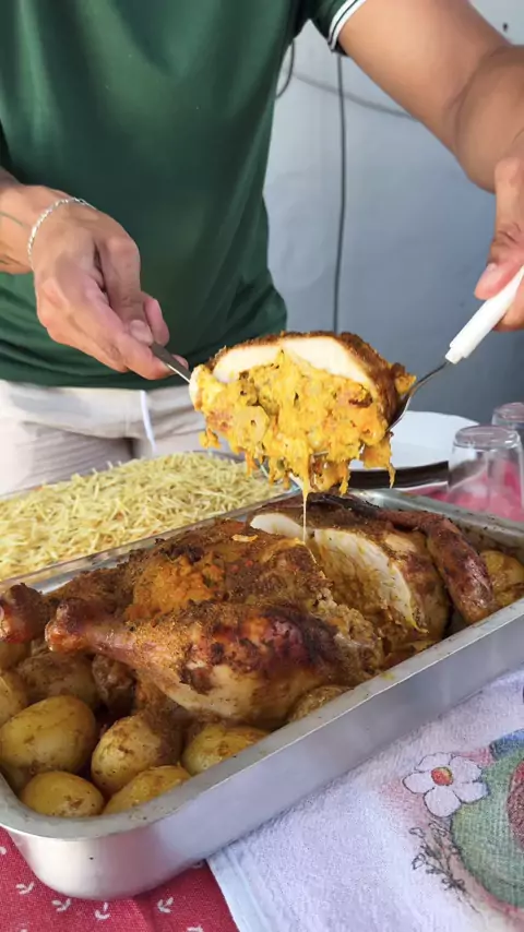 Esse frango recheado desossado devia ser crime de tão bom 😮‍💨🍗 Salva essa receita!