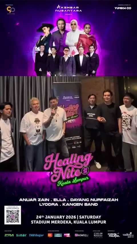 Mana fans Kangen Band, jom ngaku! 🙋‍♂️🙋‍♀️ Healing ni tak sah kalau tak jerit “”Pujaan Hati”” and “”Tentang Aku, Kau & Dia”” kuat-kuat! Kangen Band ajak korang bawa semua broken heart dan kisah lama ke Healing Nite. Kita kembali ke memori terindah dengan vokal Andika yang merdu. 📅 24 Januari 2026 🏟️ Stadium Merdeka Ready untuk throwback? Dapatkan tiket anda di Ticket2U! #healingnite #kangenband #doyjakartatimur #malaysia #