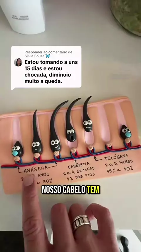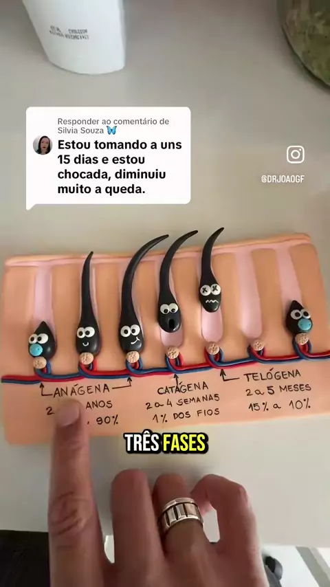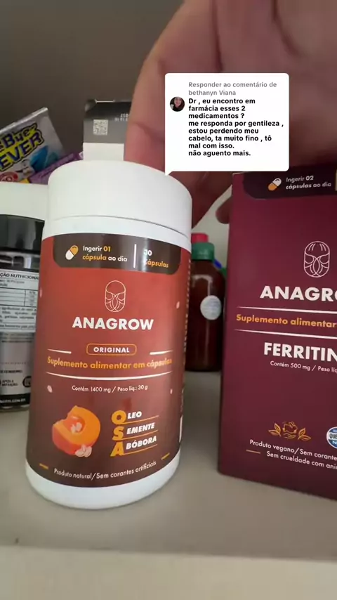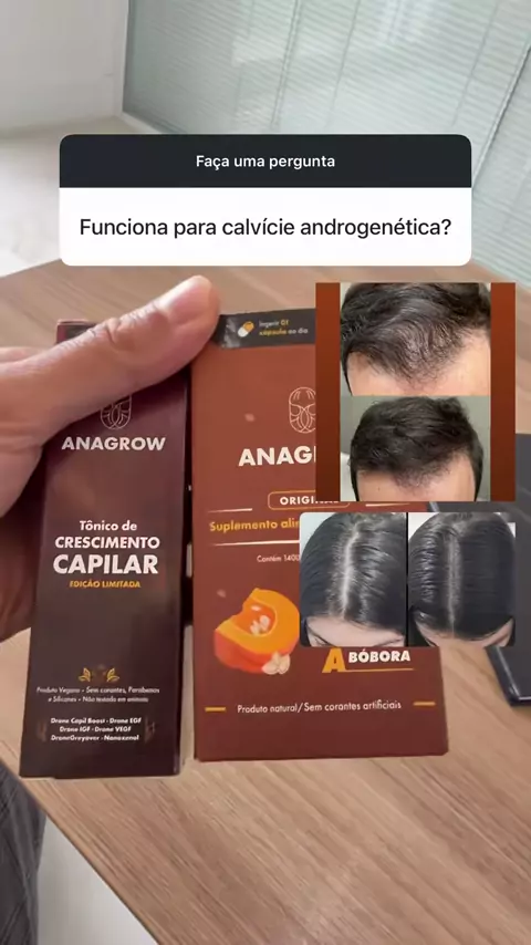 A queda de cabelo ocorre principalmente por deficiências nutricionais como a falta de ferro e vitaminas do complexo B, que interrompem o ciclo de crescimento dos fios. Sem esses componentes, o corpo não consegue sustentar a densidade capilar. Para reverter esse quadro, o protocolo Anagrow é o mais completo que você pode fazer: Para engrossar: 1 cápsula de OSA (Óleo de Semente de Abóbora) toda manhã. Contra a queda: 1 cápsula de Ferritin 12 no almoço e outra no jantar. Estimulo externo: 10 borri...