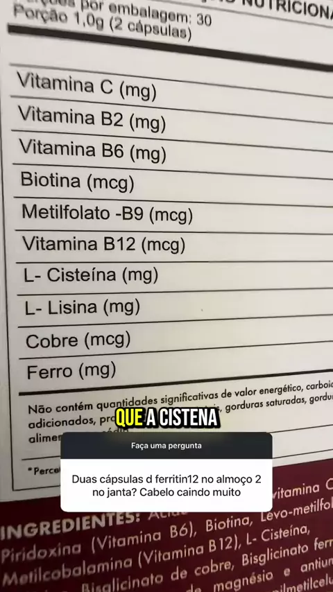 Cabelo caindo ? A queda capilar está ligada a deficiências nutricionais silenciosas. No consultório, recomendo entre 40mg a 80mg de ferro quelado por dia para reverter esse quadro. O Ferritin12 entra como um aliado poderoso porque não é só ferro: ele tem um mix de vitaminas e aminoácidos (como L-Cisteína e L-Lisina) que formam a estrutura do fio. 🧱✨ Assista ao vídeo para entender a dose ideal e como potencializar o tratamento com a sua alimentação!