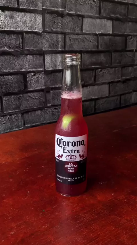#Coronasunset🥵🍻…Para o Drink! 1 corona,1limão espremido,1shot de vodka,30ml de groselha…Faz ai e comenta oq achou…Mim SIGA para mas receitas😋