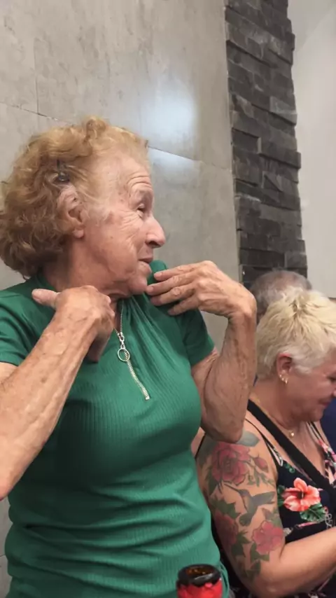 Minha linda mãe, super animada cantandoooo #jorgeematheus🥰 #Mae #amor #idosos #libertadores2024
