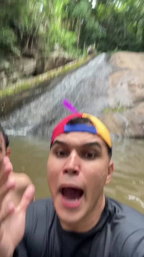 Desci no escorrego natural em uma cachoeira 😎 #radical #irmãosmedeiros