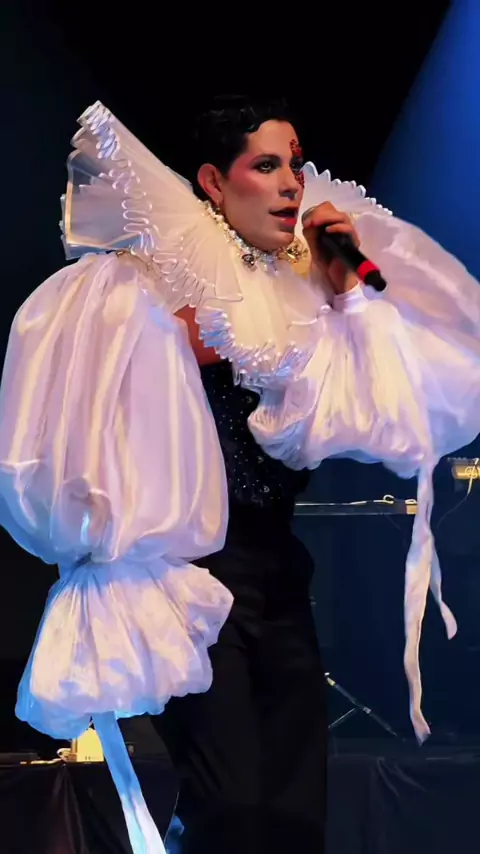 @christianchavezreal cantante en E se mañana me voy🎤🤍🖤✨️ ontem en Salvador. ParaSiempretour♾️ @christianchavezreal #rbd #rebelde #rbdSalvador #2026 @cl4u.ls.roberta.p4rdo
