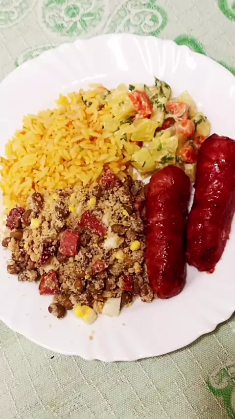 Voltei e voltei com uma receitinha top ☺️🔝 . . #comidaboa #arroz #feijaotropeiro #arrumadinho #saladademaionese