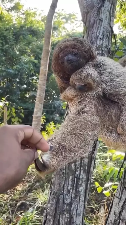 -Durante esta temporada, os jovens Bradypus torquatus estão a crescer e começam a depender menos das suas mães para a alimentação à medida que se alimentam de folhas de árvores. No entanto, eles ficam sempre perto de suas mães. Uma das jovens preguiças tropeçou e caiu, mas um guia ajudou-a a voltar para o colo da mãe, garantindo que a mãe não ficasse agitada e que a jovem preguiça não fosse ferida. 📍Praia do Forte, Brasil 🇧🇷