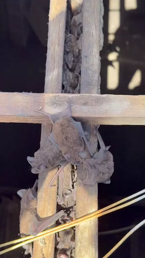 Morcegos nas madeiras do telhado 😨😨😨😨 sabia que eles viviam assim? #morcego #morcegonotelhado #telhado