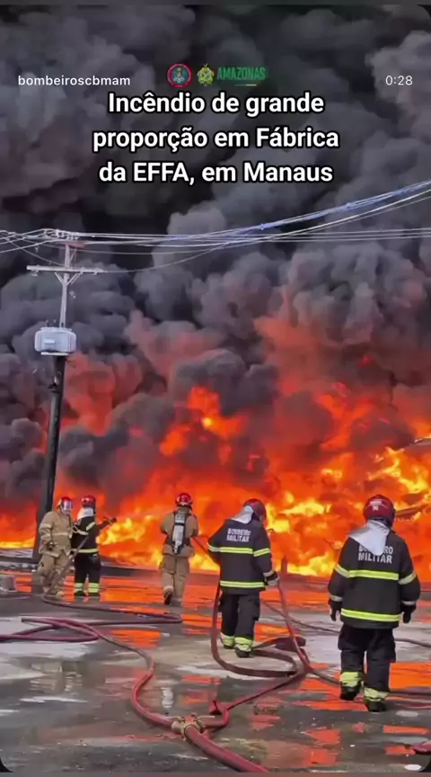 Incêndio em fábrica da zona Franca de Manaus, no distrito 2 . Na fábrica da EFFA MOTORS, o corpo de bombeiros trabalham arduamente para conterem as chamas. #distrito #manaus #fabrica #fogo #perigo