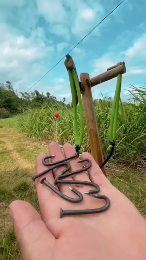 Estilingue novidade feito de bambu e pregos. # estilingue # diyslingshot # diy # diyproject #