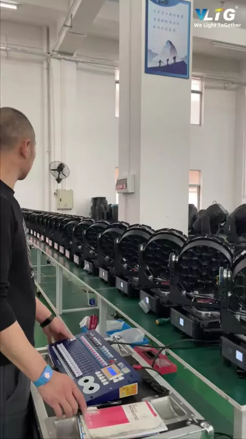 Depuração LED 12 * 40 Bee Eyes Moving Head Light RGBW 4in1 Verifique se a iluminação do palco está operando normalmente, se há algum atraso ou ruído durante a operação. # vltg # stagelighting # movingheadlight # eventlighting # concertlight # discolight # eventlighting