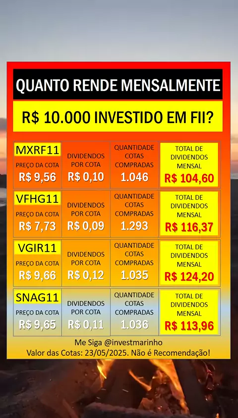 Quanto renderia hoje mensalmente em dividendos investindo R$ 10.000,00 em fundos imobiliários? #dinheiro #dinheiro #investimentos #dividendos