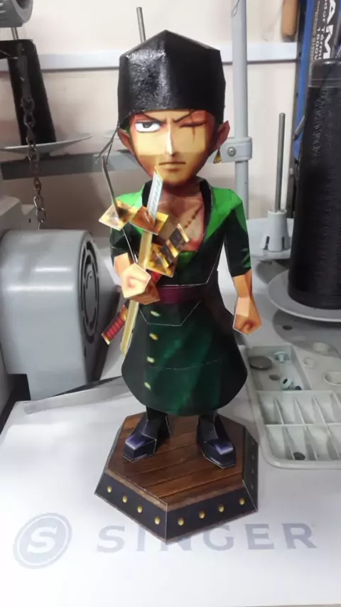 Papercraft - Chibi do Zoro personagem do anime One Piece. Peça produzida em papel 180g e acabamento em goma laca. #papercraft #pepakura #nerd #arte #anime