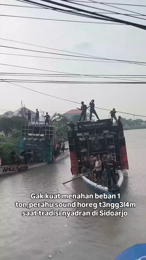 Diduga Berat Beban Berlebih, Kapal Sound Horeg Oleng dan Tenggelam Saat Acara Ritual Nyadran di Sidoarjo Persiapan ritual adat Nyadran di Desa Balongdowo, Sidoarjo, berujung musibah pada Sabtu (07/02/2026). Sebuah perahu yang mengangkut perangkat sound horeg senilai ratusan juta rupiah tenggelam di sungai setempat akibat kelebihan beban. Perahu hilang keseimbangan karena muatan terlalu berat hingga perlahan karam. Warga masih berupaya menyelamatkan perangkat audio dan bangkai perahu