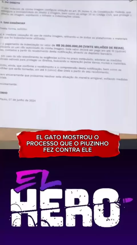 El Gato mostrou o processo que o piuzinho fez contra ele de 20 milhões 😱 #Elgato #elHero #viraliza #piuzinho