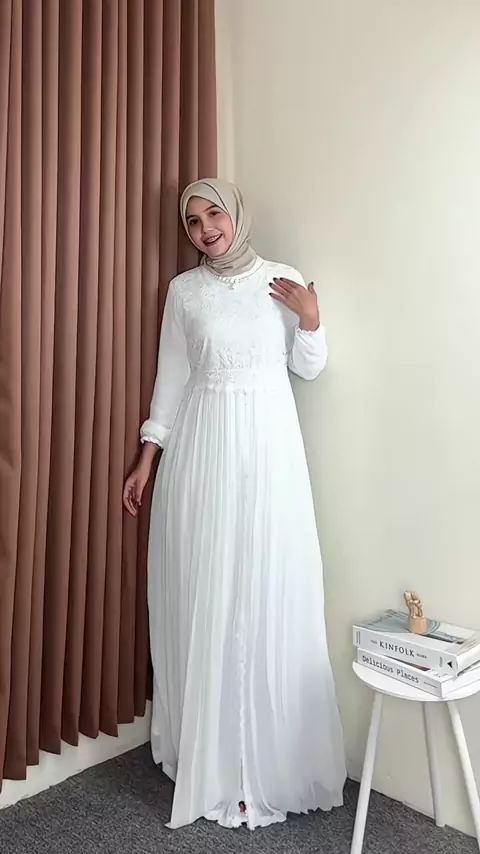 Gamis putih buat lebaran nanti cantik dan anggun bgtt💗🫶✨ @AgnesHijab #gamis #gamislebaran #gamiscantik #outfitlebaran #gamisputih