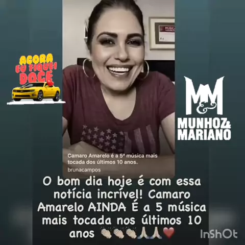 Que noticia mais maravilhosa que eu recebi hoje eu como fรฃ apaixonada pelos meus amores Munhoz e Mariano estou mega feliz . A mรบsica Camaro Amarelo รฉ a quinta mรบsica mais tocada nรณs รบltimos dez anos huruuuull๐ŸŽ‰๐ŸŽ‰๐ŸŽ‰ meus amores Munhoz e Mariano tenho muito orgulho de ser fรฃ de vocรชs parabรฉns meus amores ๐ŸŽ‰๐ŸŽ‰โคโค๐Ÿ˜๐Ÿ˜๐Ÿฅฐ๐Ÿฅฐ