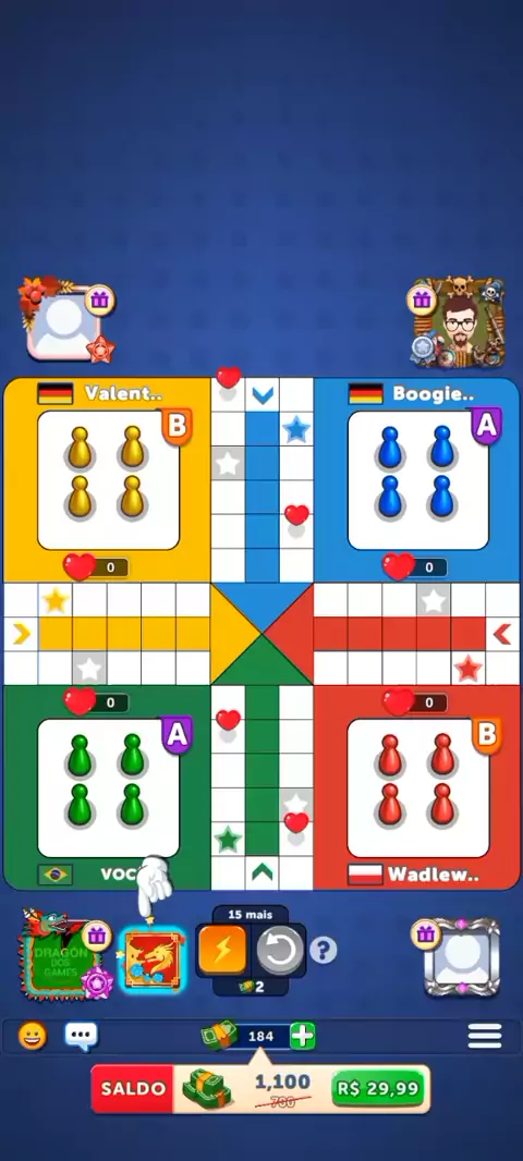 Gameplay - Torneio no modo clássico com 2 x 2 jogadores no jogo ludo club data (22/01/2026).