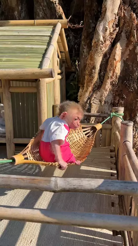 Funny baby monkey Moon fails to climb up the hammock.#monkey#babymonkey#monkeydluffy#monkeysof#funny#funnymonkey