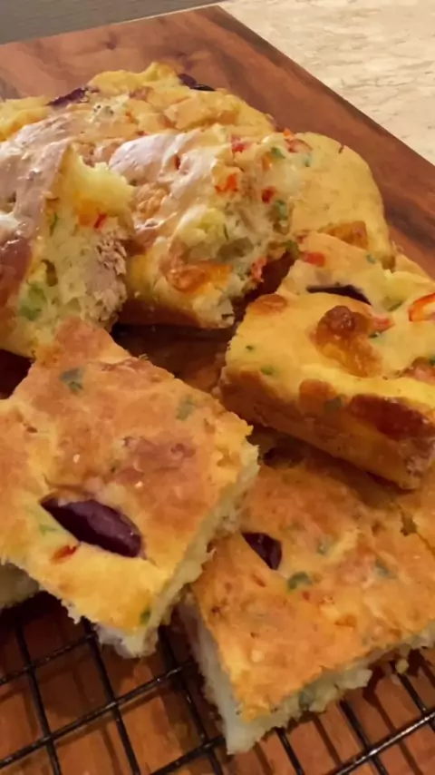 #Repost @receitas_aleogata Bolo salgado INGREDIENTES • 3 unidades de Ovo • 120 mL de Óleo (1/2 xícara) • 240 mL de Leite (1 xícara) • 5 g de Sal (1 colher de chá) • 50 g de Amido de milho (1/3 de xícara) • 240 g de Farinha de trigo (2 xícaras) • 15 g de Fermento químico (1 colher de sopa) • Cebolinha picada a gosto • 1 unidade de Tomate sem sementes picadinho • 1 unidade de pimentão • 120 g de Queijo muçarela picadinho • 1 lata de atum MODO DE PREPARO COMPLETO NO VÍDEO 👉