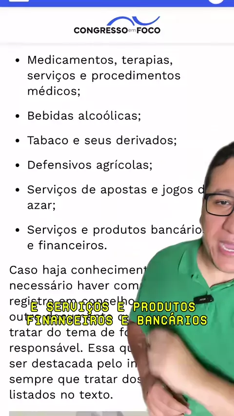 🚨 Influenciadores poderão ser proibidos de falar sobre saúde, finanças e apostas sem qualificação técnica Foi apresentado na Câmara um projeto de lei que propõe limitar a atuação de influenciadores digitais em temas sensíveis como medicamentos, procedimentos médicos, produtos financeiros, apostas, bebidas alcoólicas e tabaco. 📌 A ideia é simples: