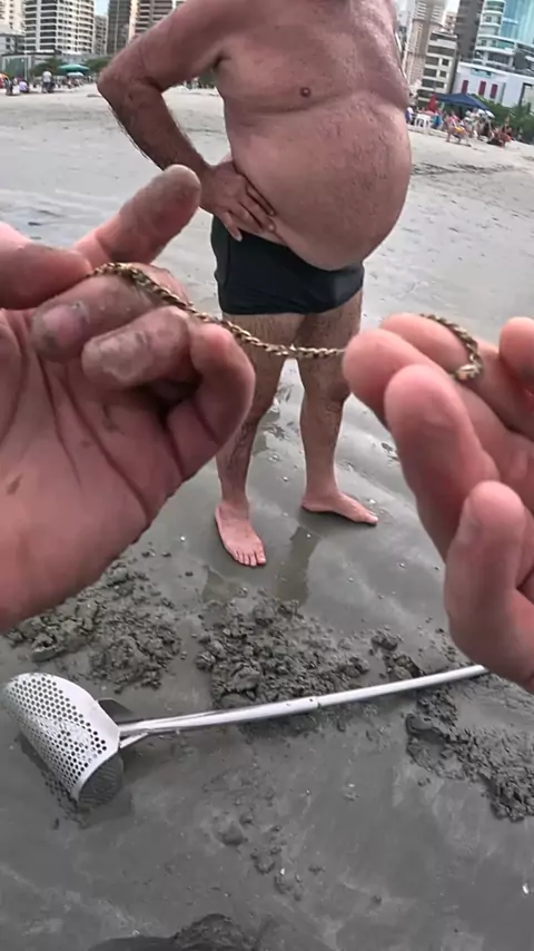 É dourado, será que é ouro?? #SóPrecisava #detectordemetais #detectorismo #praia #tesouros