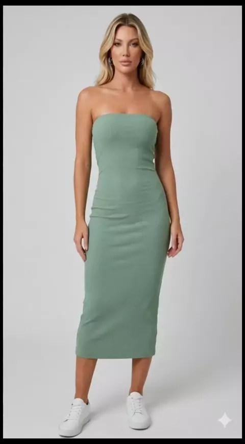 Vestido midi tomara que caia feminino tecido anarruga moda feminina #vestidos #roupasfeminina #topmodel