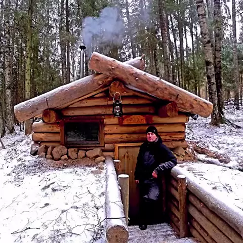 homem constrói uma cabana de madeira muito resistente para se proteger do frio extremo e dos perigos da floresta, assista ao vídeo e veja o resultado final #sobrevivencia #campamento #acampamento #arlivre #sobrevivencianaselva
