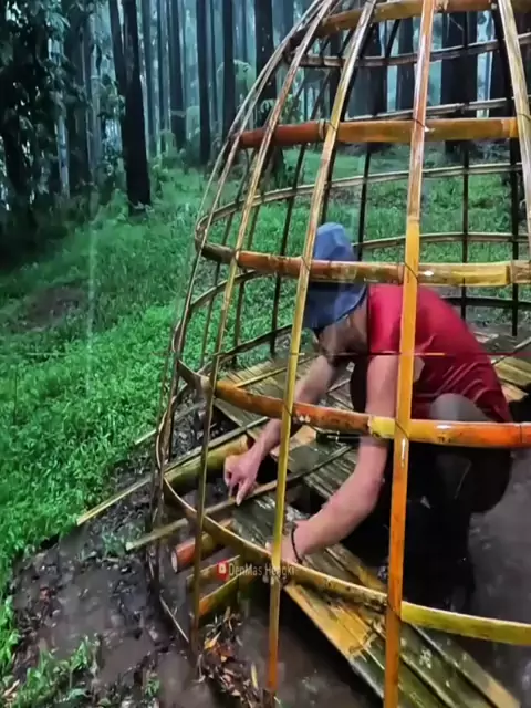 Esse homem está construindo um abrigo usando bambu e papel filme para se proteger da chuva e do frio, confira o vídeo e veja o resultado final. #sobrevivencianamata #parque #sobrevivencianaselva #Natureza #floresta